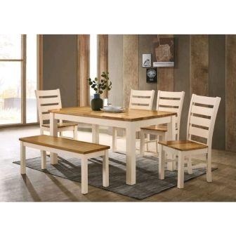 Chelsea Cream/Oak Dining Set. Table, 4 Chairs and Bench
