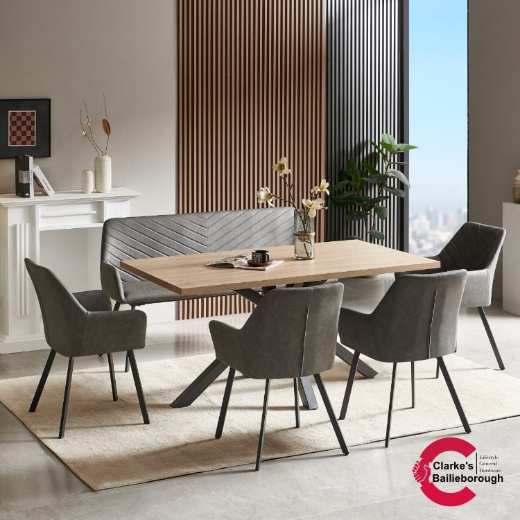 Chrissie Dining Set - 160cm Scratch Resistant Table - Chairs and Bench