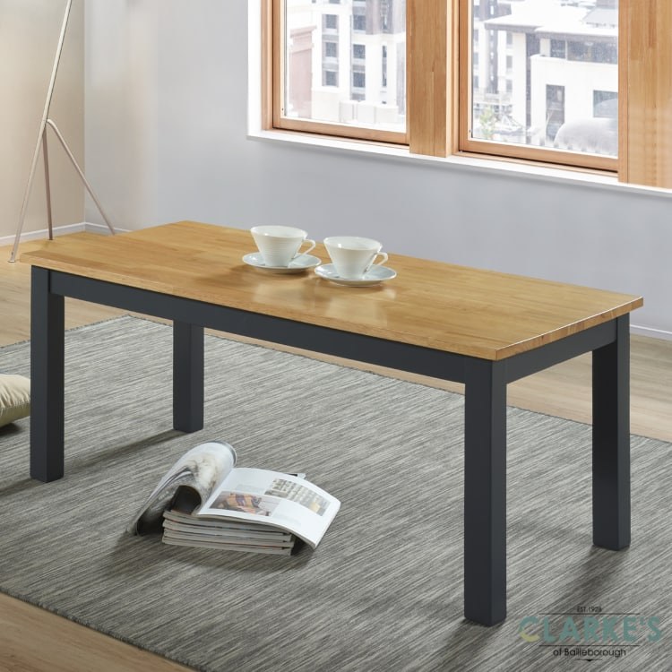 Effortlessly blending the warmth of rustic materials with the streamlined refinement of monochrome tones, the Columbia Charcoal Coffee Table makes a great addition to the modern living space. An uncomplicated design allows the tactile lustre of the natural wood top to shine, presented on sturdy charcoal grey legs that engender a modern feel. Choose the matching Columbia Charcoal Console Table to create a stylish duo of furniture or expand the collection with the Columbia Charcoal Dining Set.