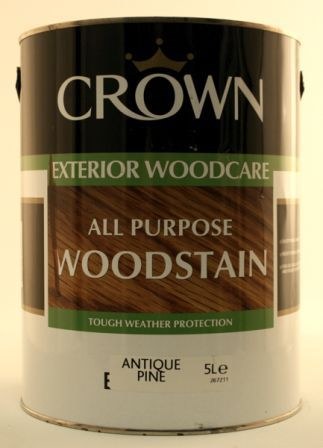 Crown All Purpose Woodstain is a durable general purpose exterior woodstain which absorbs deeply into the timber to provide exceptional protection against the weather. It is particularly effective on large areas of timber such as cladding, fascias and rough sawn timber. It may also be used as a two coat system for decking. Crown All Purpose Woodstain is an ideal base stain on new exterior joinery such as windows and doors to be subsequently coated with Crown Translucent Woodstain.