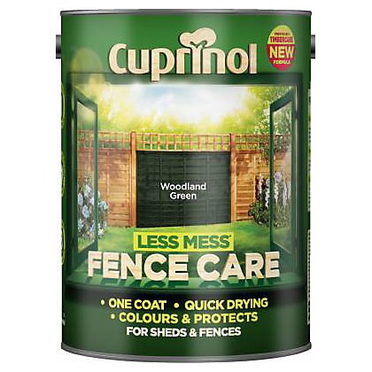 Cuprinol Less Mess Fence Care has been specially developed to colour and protect sheds, fences and other rough sawn garden wood. Its special pigments ensure a rich colour and even coverage in just one coat.