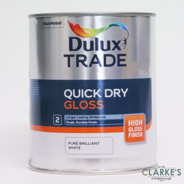Dulux Trade Quick Dry Gloss is part 2 of an advanced 2 part water-based, high gloss system that provides a smooth, durable top coat for use on both interior wood and metal.