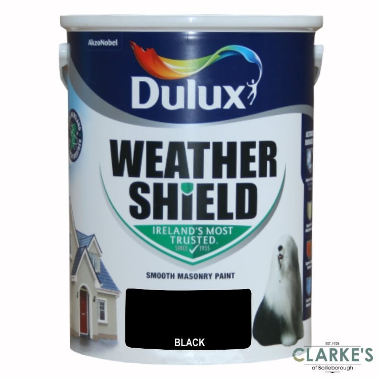 Dulux Weather Shield Black Smooth Exterior Masonry paint is Made in Ireland to protect Irish homes from our unique weather. The new Ultimate Durability formula with Superior Flexibility protects the paint from cracking and flaking, while Superior Colour Retention ensures colours stay true and Superior Mould Resistance works against mould and algae growth for longer thanks to slow-release encapsulated biocide technology. Dulux Weathershield Ultimate Durability is our most durable exterior paint ever.