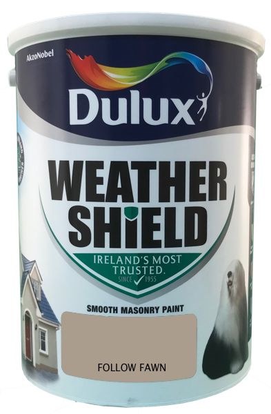 Dulux Weathershield Follow Fawn Smooth Exterior Masonry paint is Made in Ireland to protect Irish homes from our unique weather. The new Ultimate Durability formula with Superior Flexibility protects the paint from cracking and flaking, while Superior Colour Retention ensures colours stay true and Superior Mould Resistance works against mould and algae growth for longer thanks to slow-release encapsulated biocide technology. Dulux Weathershield Ultimate Durability is our most durable exterior paint ever.