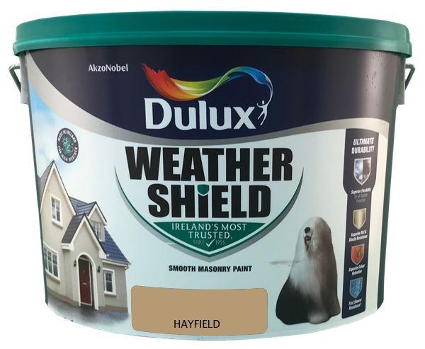 Dulux Weathershield Hayfield Smooth Exterior Masonry paint is Made in Ireland to protect Irish homes from our unique weather. The new Ultimate Durability formula with Superior Flexibility protects the paint from cracking and flaking, while Superior Colour Retention ensures colours stay true and Superior Mould Resistance works against mould and algae growth for longer thanks to slow-release encapsulated biocide technology. Dulux Weathershield Ultimate Durability is our most durable exterior paint ever.