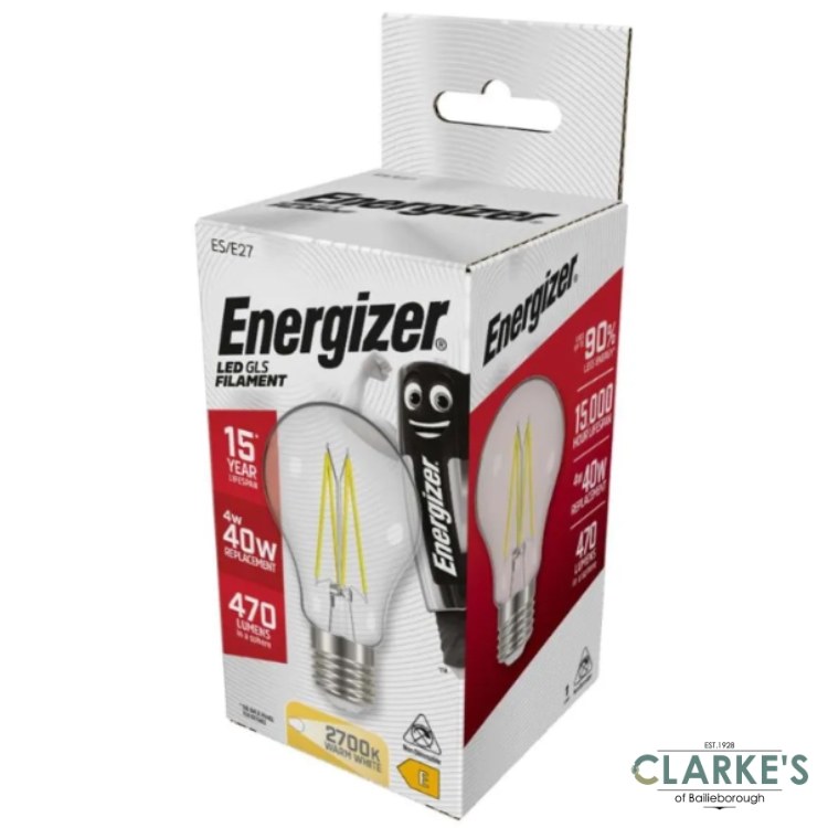 ENERGIZER LED 4W (40W) FILAMENT BULB is a modern and energy-efficient replacement for your old 40W incandescent bulb. It is equivalent to an 40W incandescent bulb, but it uses only 4W of power. This saves you money on your electricity bills and reduces your carbon footprint.
