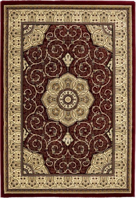 The Heritage is a high density Decolan heat-set Polypropylene rug with a wool look pile. The 4400 design is hand carved, has a traditional central medallion in red surrounded by cream and a complimentary beige boarder.