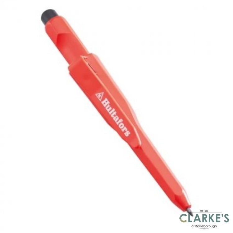 Supplied in a holster with a built-in sharpener for clear markings, the grip-friendly and ergonomically designed Hultafors Dry-Marker is easy to remove - so you don't have to let go of what you're working with. The shape of the holster ensures the pen stays in place, even when you move - and the pen can be used whilst in the holster or removed completely, depending on your preference. There is a hole in the bottom of the holster too, which allows dirt and moisture to fall away from the pen to extends its life. Plus, the lead is easy to change and refills are available.