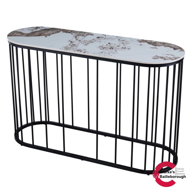Bring timeless elegance and contemporary style into your home with the Kas Console Table. Featuring a luxurious marble-look tabletop in beautifully blended shades, this piece effortlessly complements both modern and classic interiors. Supported by sturdy black steel legs, it combines durability with sleek design - perfect for hallways, living rooms, or dining areas. Whether used for displaying décor, holding everyday essentials, or adding a statement touch to your space, the Kas Console Table delivers sophistication and practicality in one.