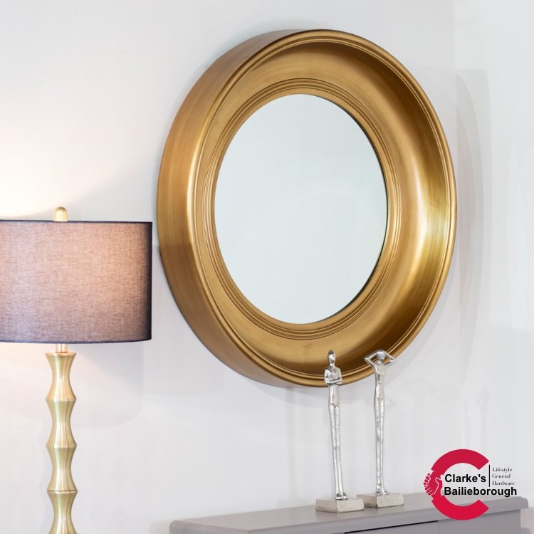 Add a touch of elegance to your space with the Marcella Deep Round Mirror. Featuring a generous 90cm diameter and a sleek, gold-toned deep frame, this mirror blends luxury with modern simplicity. Its minimalist design and large reflective surface brighten and open up any room, perfect for living rooms, bedrooms, or hallways.