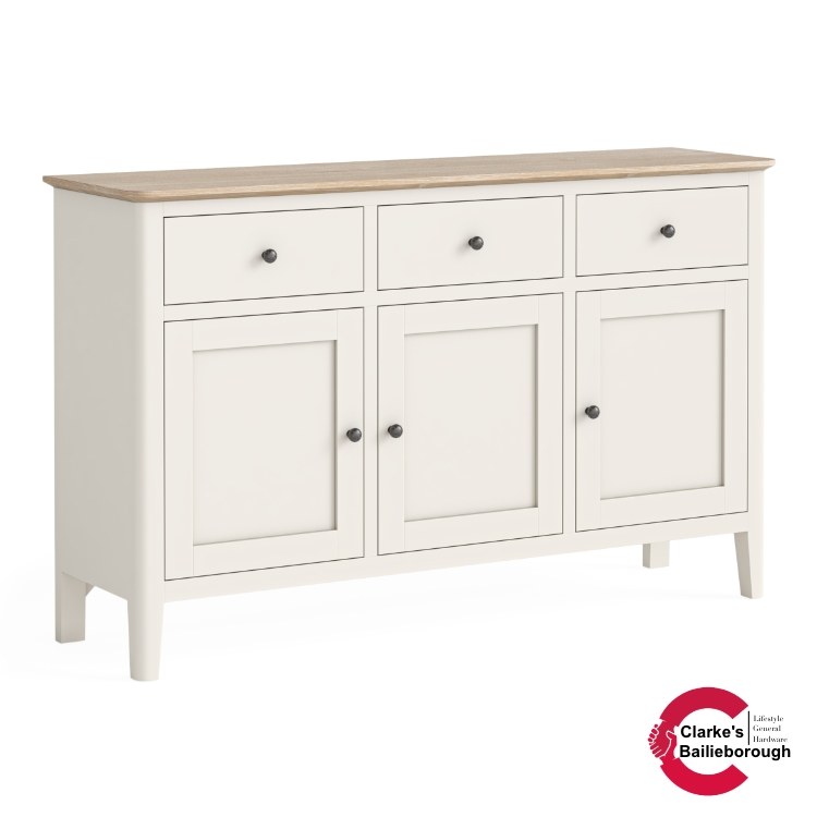 Bring timeless charm and practical storage to your home with the beautifully crafted Marlow Large Sideboard. Finished in a soft Coconut White with a durable white washed oak top, this elegant piece blends classic design with everyday functionality.