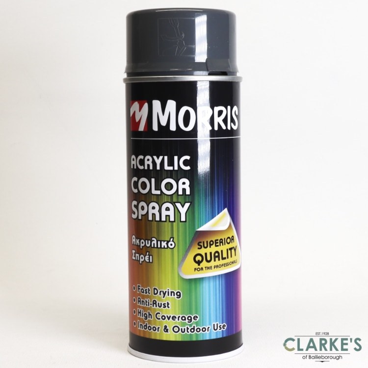 Morris Fast Drying Acrylic Spray Lacquer for surfaces of wood, metal, aluminium, glass, stone and various sorts of plastic.