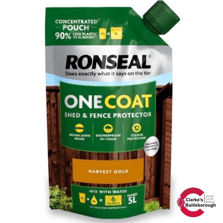 All the protection you know and trust, now in a lightweight, eco-friendly pouch. Just mix with water to make 5L of our ready-to-use One Coat Shed & Fence Protector - perfect as a refill for your existing bucket. It brushes or sprays on easily in one coat, delivering 2 years of tough, weatherproof colour that stands up to rain, frost, snow and sun. Plus, it’s showerproof in just one hour. With 90% less plastic than a 5L bucket, it’s a smarter choice for your shed, fence, and the planet.