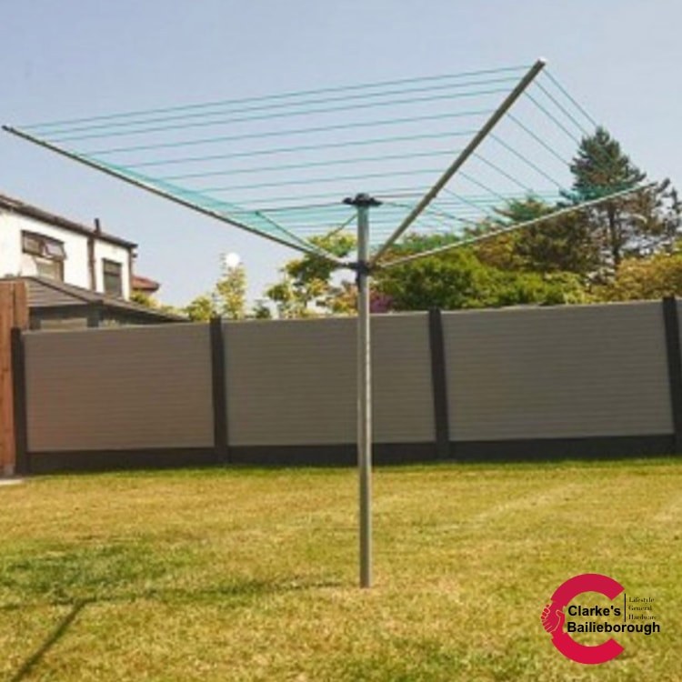 - 4 arm rotary design maximises drying space while saving garden room