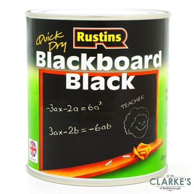 Blackboard Black provides a matt black non-reflective surface for blackboards and photographic work. Create a chalkboard on almost any surface. Suitable for interior and exterior use. Clean brushes in water.