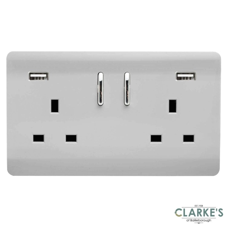 Trendi 2 Gang Switched Socket with USB Ports Stainless Steel