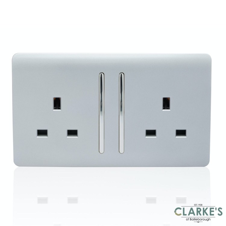 Trendi 2 Gang Switched Socket with USB Ports Platinum Silver
