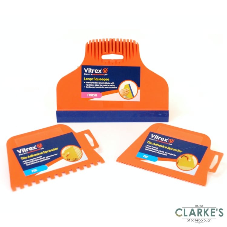 Tile Adhesive Spreaders are for fast adhesive application. The 6mm square notch spreader is to be used for installing tiles on walls, and the 4mm V notch spreader is ideal for installing smaller tiles and mosaics on walls.