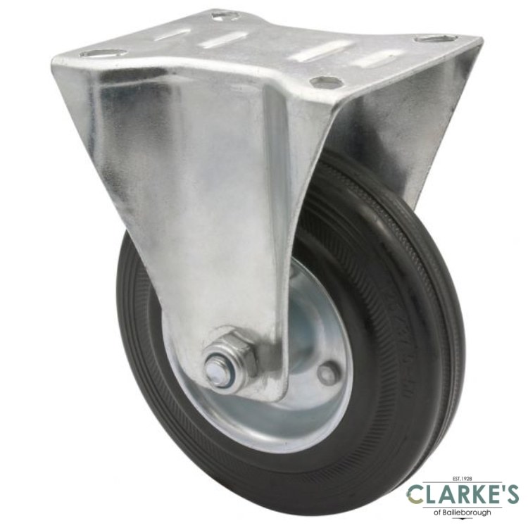 Housing, screw-on plate and rim of the fixed castor for transport equipment are made out of solid industrial steel. The wheel is made out of high-quality solid rubber.