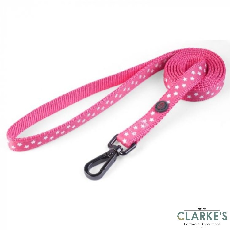 Starry Pink dog leads are made with premium nylon webbing and interchangeable lead clips.