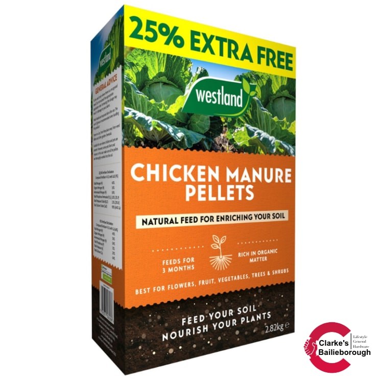 Naturally enrich your garden with Westland Organic Chicken Manure Pellets - a composted, non-chemical fertiliser packed with nitrogen for strong, leafy growth. Ideal for soil improvement and feeding all around the garden, these pellets provide balanced nutrients (NPK 4.5-3.5-2.5 + trace elements) to boost plant health and vitality.